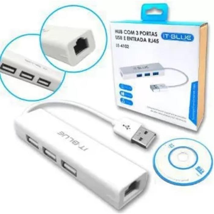 1 Adaptador USB lan com hub 3 portas LE-4102
