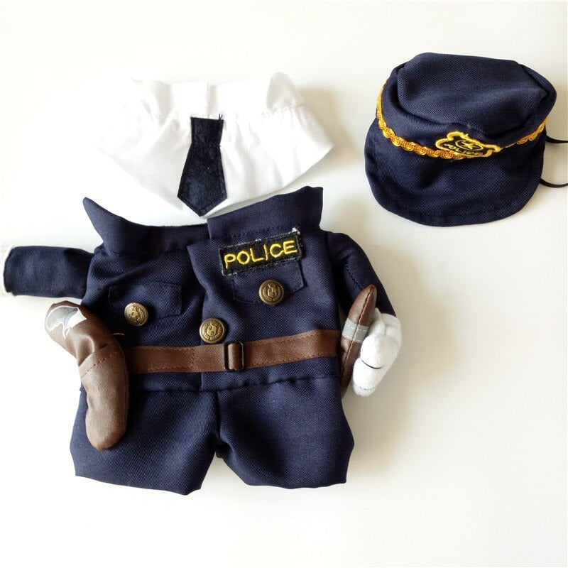 FÁCIL DE VESTIR -A Fantasia Pet Policial é vestida apenas nas patinhas dianteiras do seu pet. O corpo é preso nas costas com dois laços de barbante. Prepare a câmera para filmar seu pet de frente!